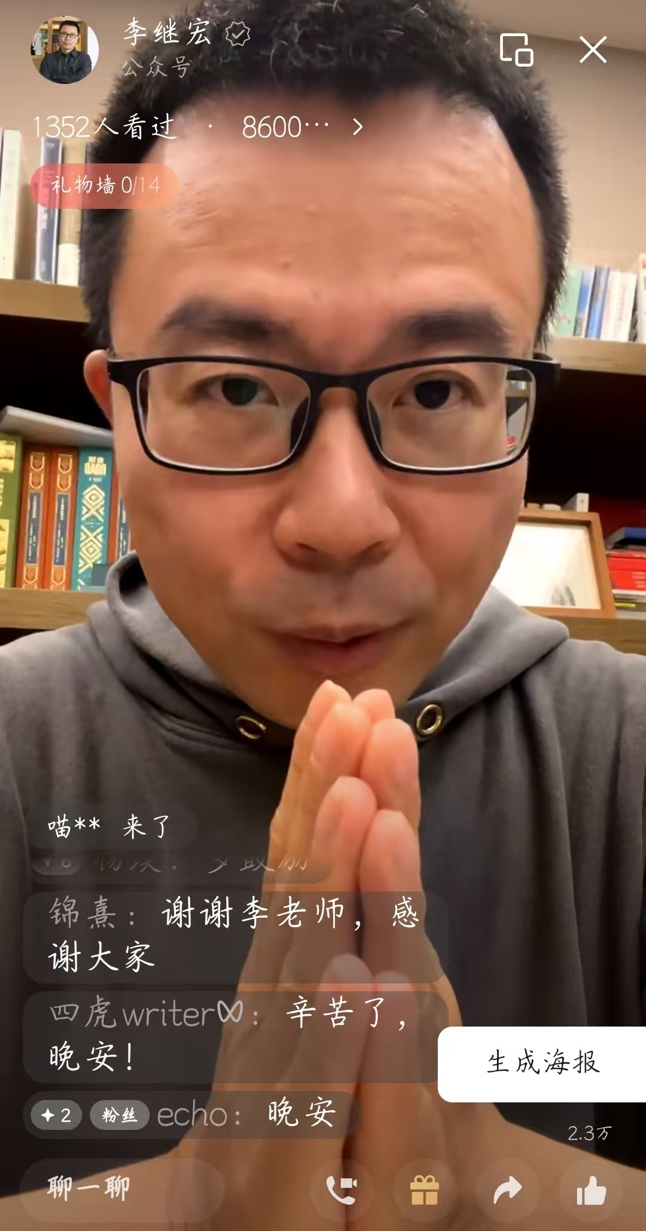 在阅读民风上,李继宏如故保举公共尽可能地阅读纸质书,“在手机上念书,还有一个很大的弊病,来了一个微信、哪个 APP 有见知了,你每每会被打断。但看纸质书就不有这个问题,目下是一个信息多余的期间。看电子书虽然也不错领受书中的信息,但与看纸质书比较接管的信息、念念考的深度如故不同。”